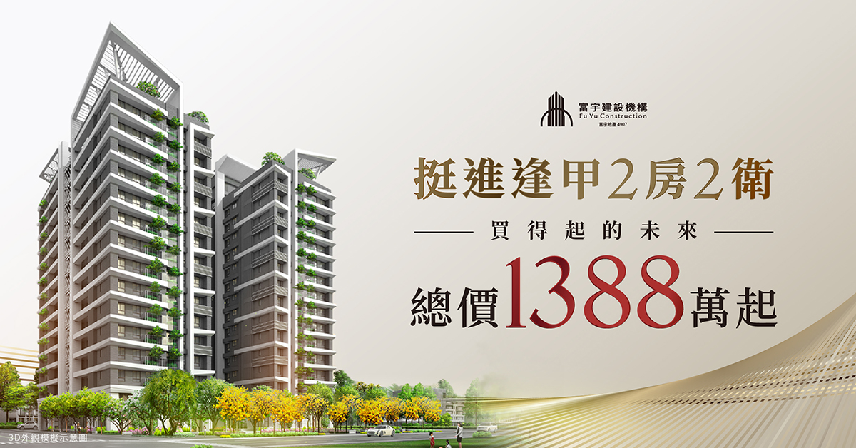 富宇建設新案專區:1388萬起,下樓即逢甲,精奢宅2房2衛